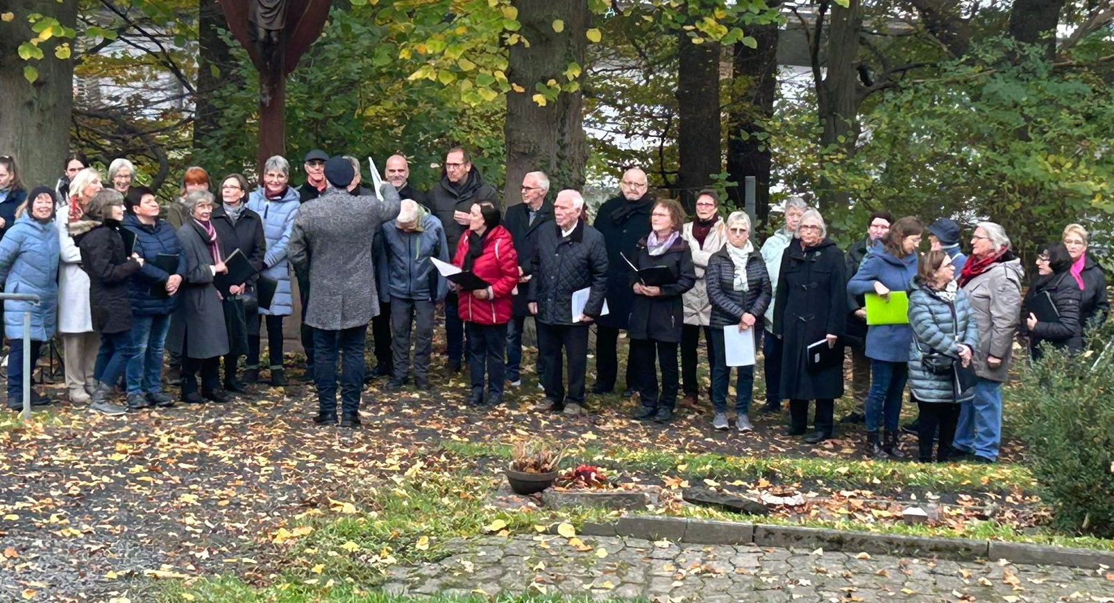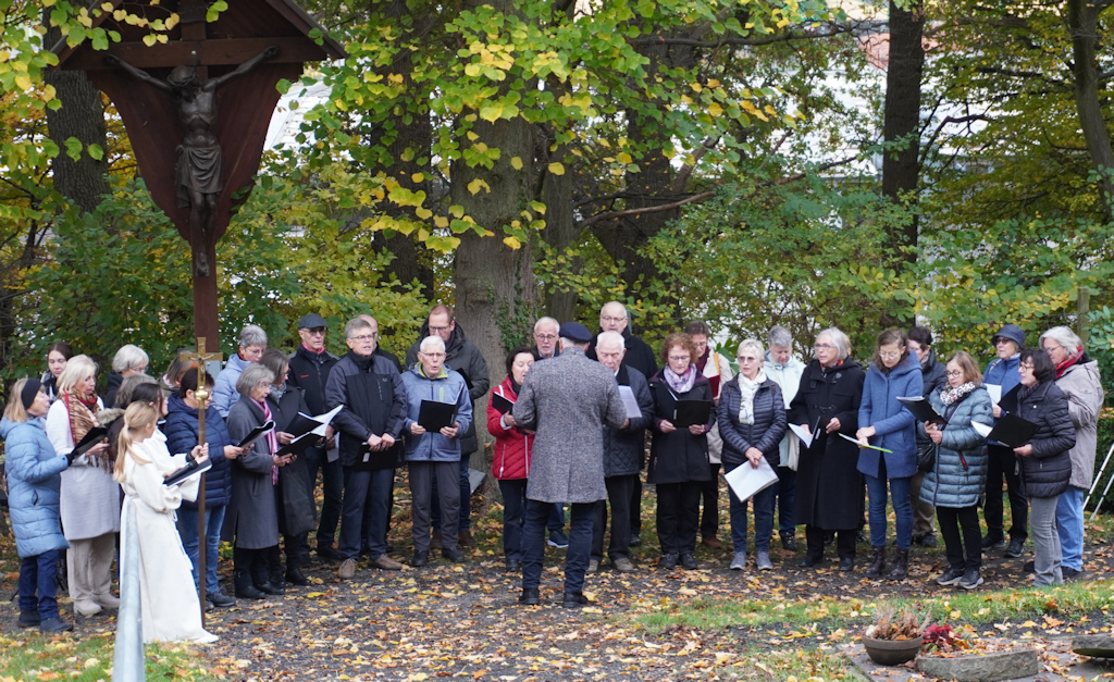 Nach der Messfeier in der St. Stephanuskirche versammelt sich die Gemeinde auf dem Friedhof zur Gräbersegnung.